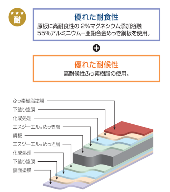 ふっ素樹脂塗装とエスジーエルの組み合わせで長期にわたり美しさを保ちます。