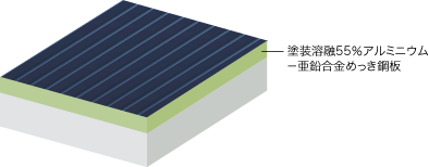 錆に強く優れた耐食性を持つ溶融55%アルミニウム-亜鉛合金めっき鋼板。